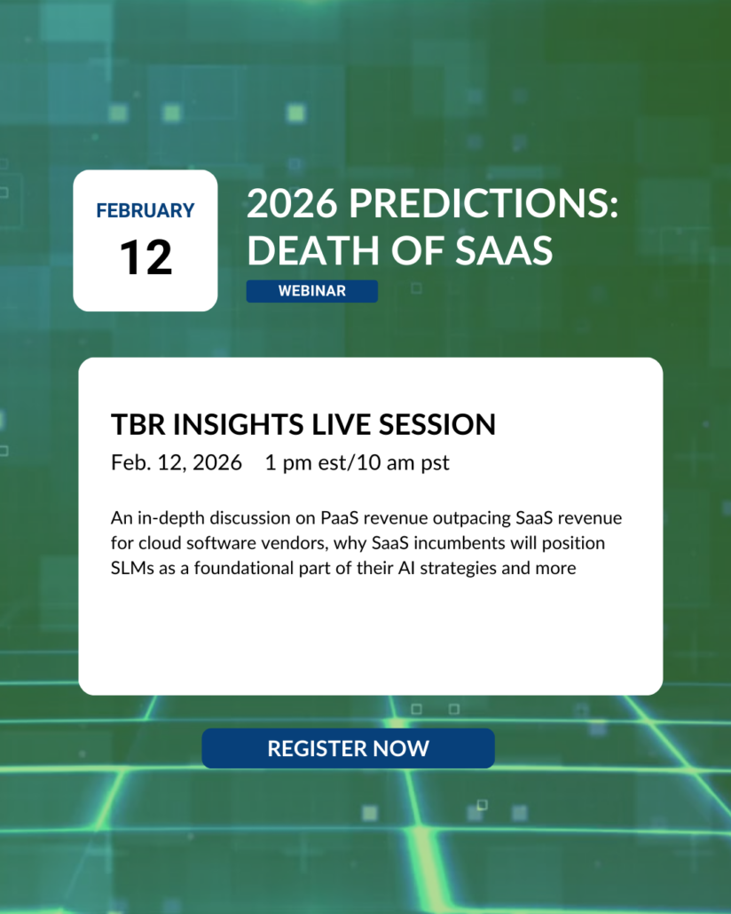 With TBR’s Cloud & Software market and competitive intelligence research, gain a true understanding of how technology and business strategies are being used by leading vendors to address the growing desire for cloud-enabled solutions. Our unique research in this space includes financial data that goes beyond just reported data, revenue and growth benchmarks, go-to-market analysis, ecosystem and partnership teardowns, and market sizing and forecasting.