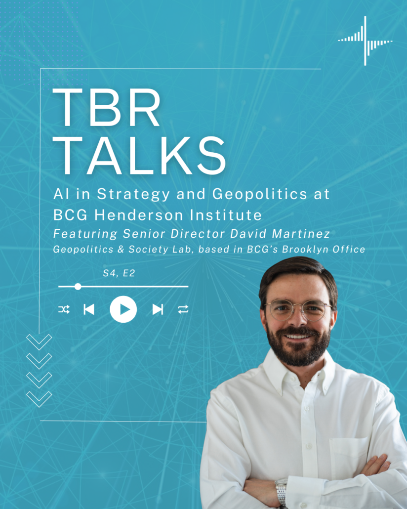 In this episode of “TBR Talks,” Senior Director David Martinez shares his point of view on key topics covered by his BCG Henderson Institute team, particularly regarding geopolitics and artificial intelligence. The BCG Henderson Institute is an internal think tank at Boston Consulting Group.